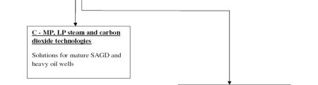 Aging SAGD wells with developed underground chambers can also be a significant consumer of steam and combustion gas injection fluid. The DCSG combustion gas and steam mixture costs less than steam, this will offset the increasing amount of fluid that have to be injected to the aging formation. The thermal energy added to the reservoir is the latent heat of evaporation of the water vapour. Some non-condensed gases (NCG) will migrate to the upper section of the SAGD chamber and will pressurize it. A portion of the CO2 will permanently stay in the formation (CO2 sequestration).